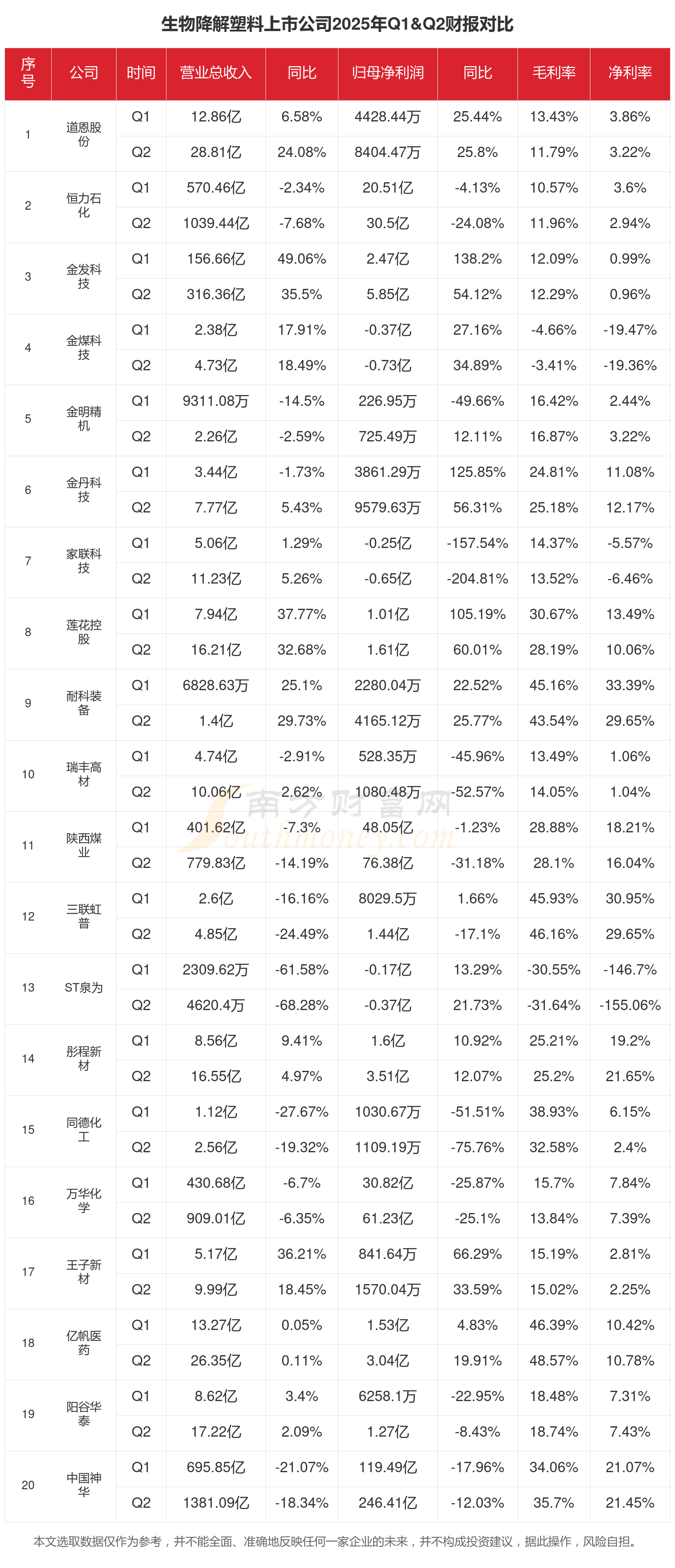根据南方财富网概念查询工具数据统计,A股24家生物降解塑料相关上市公司已发布2025年上半年财报。2025年上半年大家都过得怎么样?一起来看看吧。