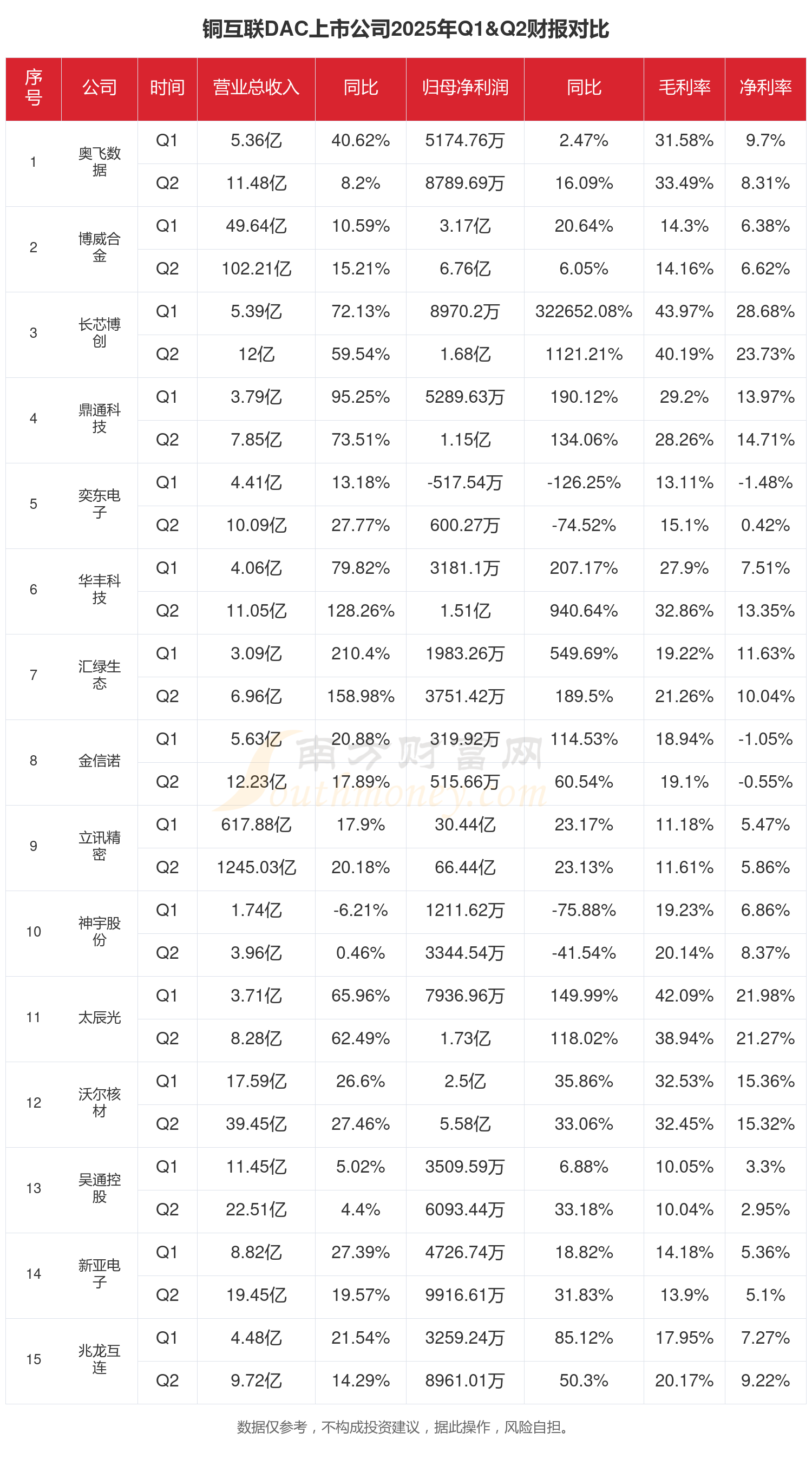 根据南方财富网概念查询工具数据统计,A股15家铜互联DAC相关上市公司已发布2025年上半年财报。2025年上半年大家都过得怎么样?一起来看看吧。