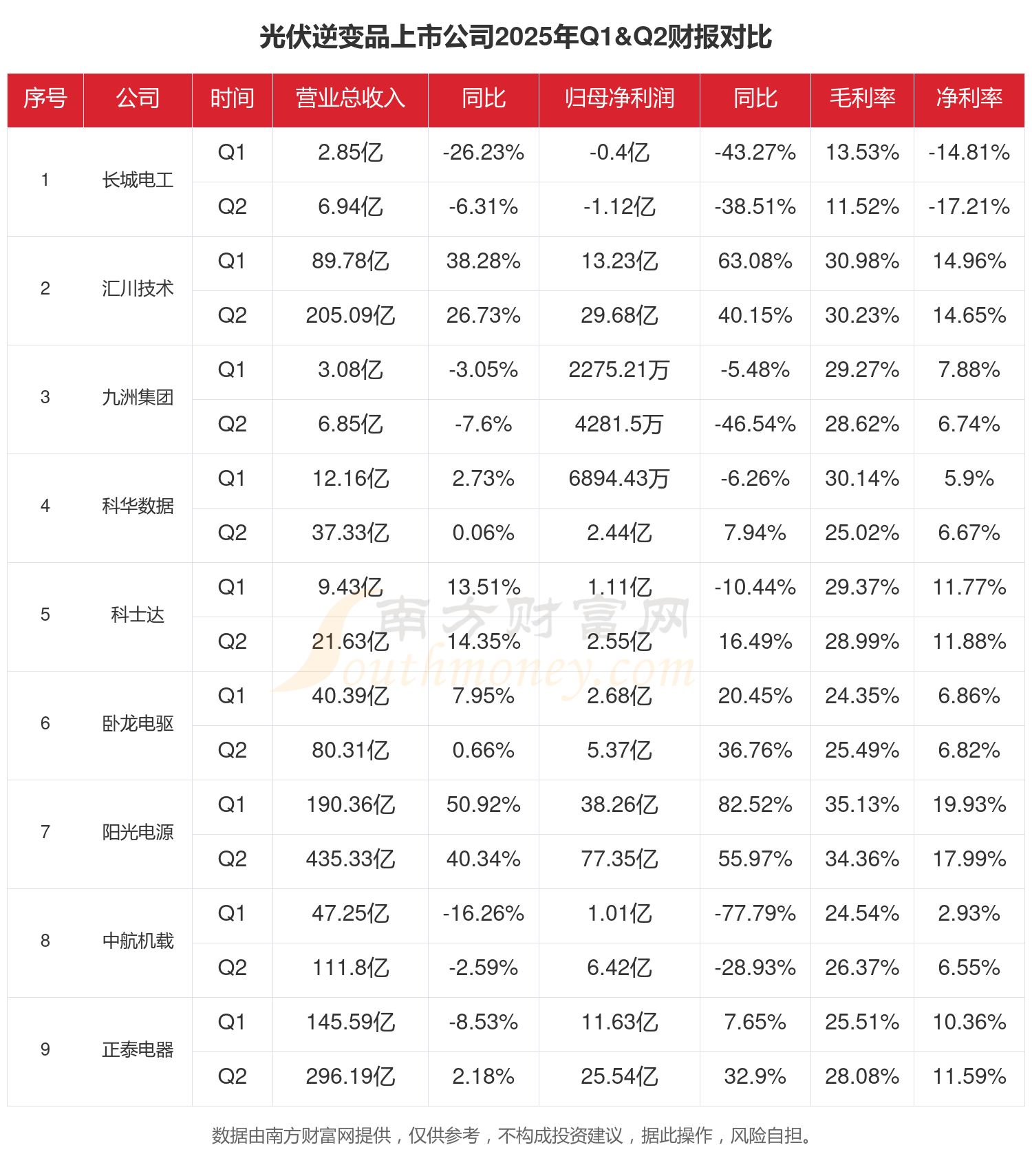 根据南方财富网概念查询工具数据统计,A股9家光伏逆变品相关上市公司已发布2025年上半年财报。2025年上半年大家都过得怎么样?一起来看看吧。