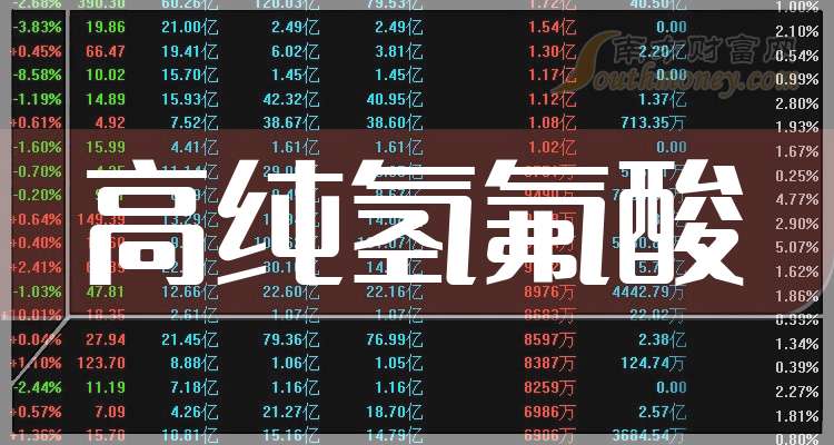 据南方财富网概念查询工具数据显示,相关高纯氢氟酸上市公司: