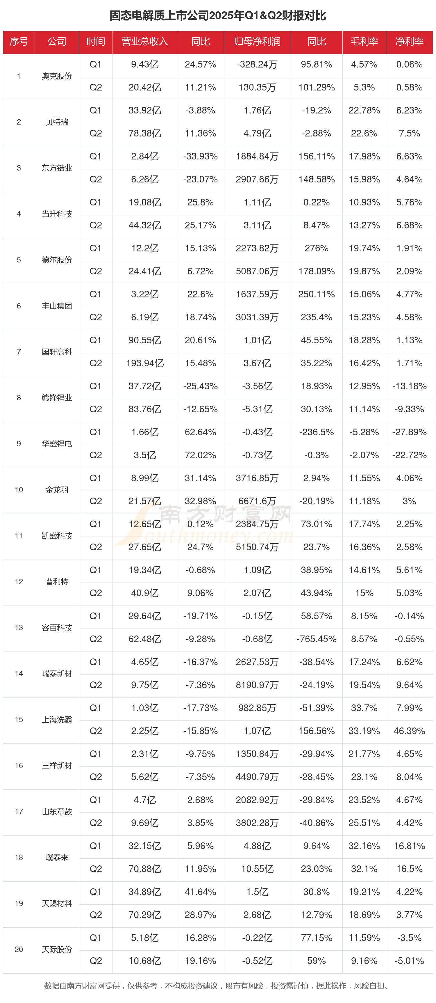 根据南方财富网概念查询工具数据统计,A股24家固态电解质相关上市公司已发布2025年上半年财报。2025年上半年大家都过得怎么样?一起来看看吧。