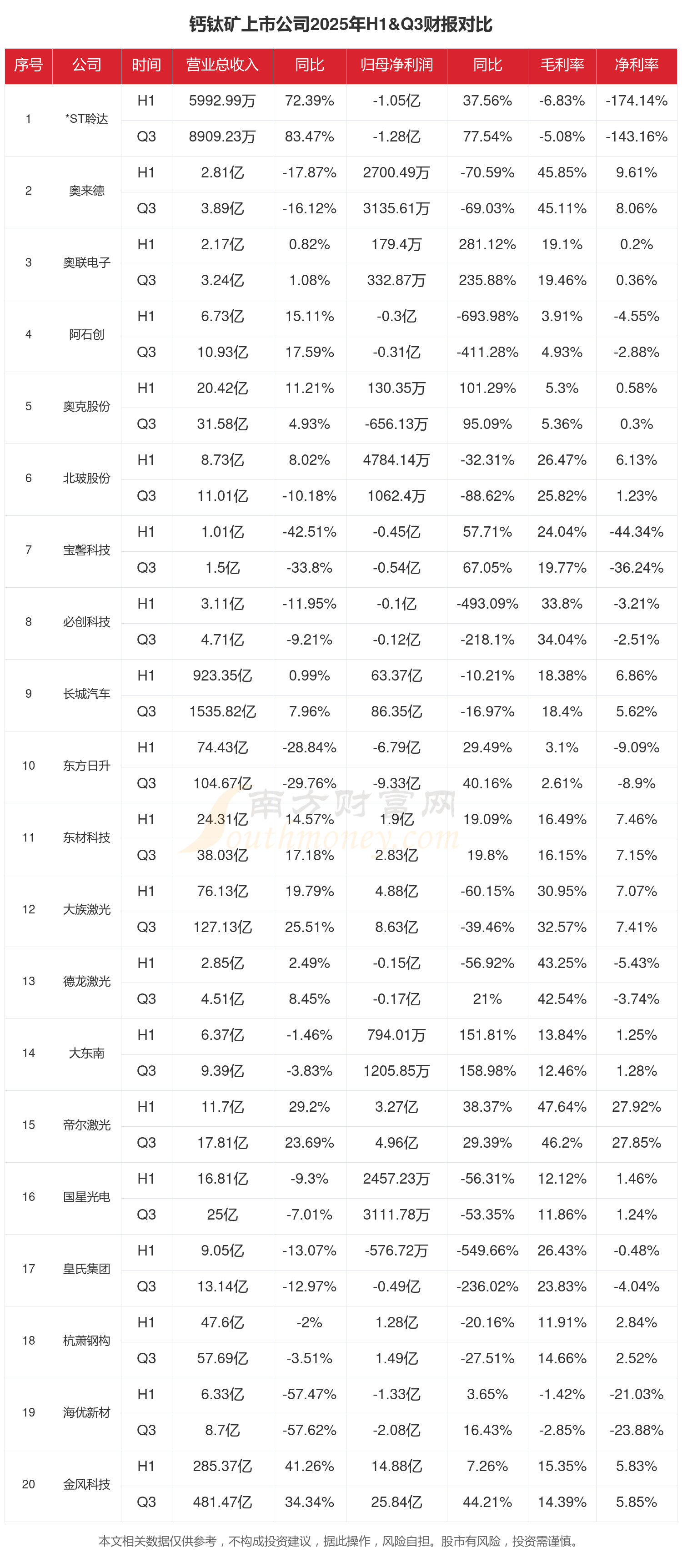 根据南方财富网概念查询工具数据统计,A股51家钙钛矿相关上市公司已发布2025年前三季度财报。2025年前三季度大家都过得怎么样?一起来看看吧。