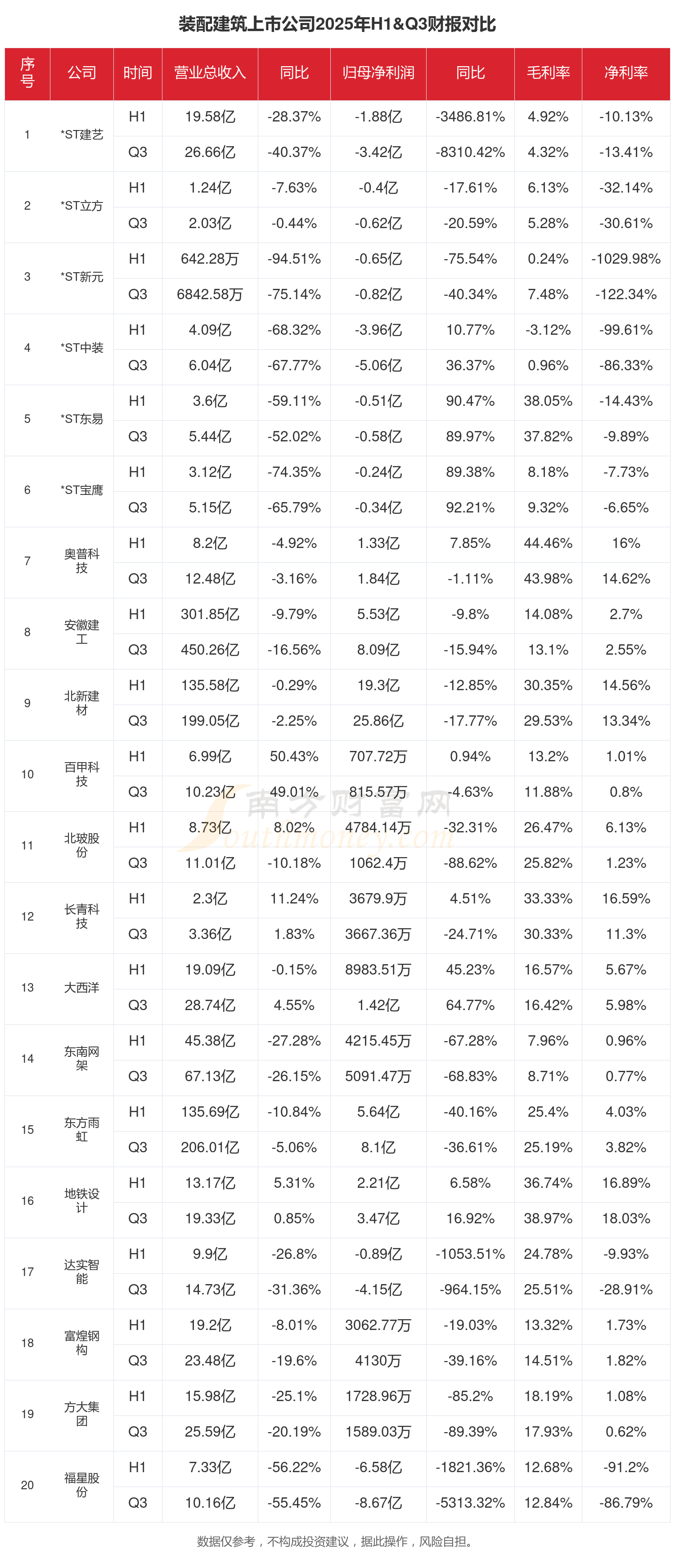 根据南方财富网概念查询工具数据统计,A股95家装配建筑相关上市公司已发布2025年前三季度财报。2025年前三季度大家都过得怎么样?一起来看看吧。