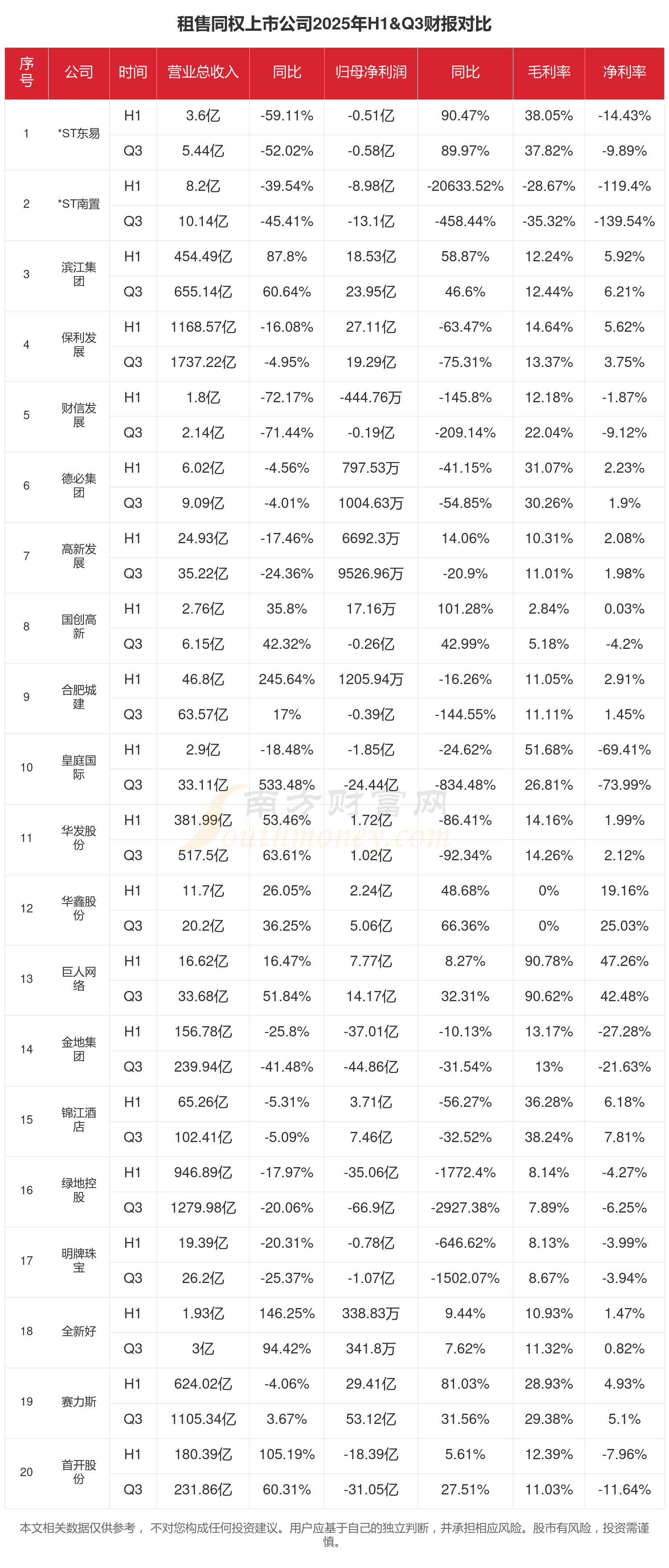 南国置业(002305):2025年第三季度季报显示,公司营收同比增长-61.26%至1.94亿元;*ST南置净利润为-4.12亿,同比增长-72.51%,毛利润为-1.23亿,毛利率-63.37%。
