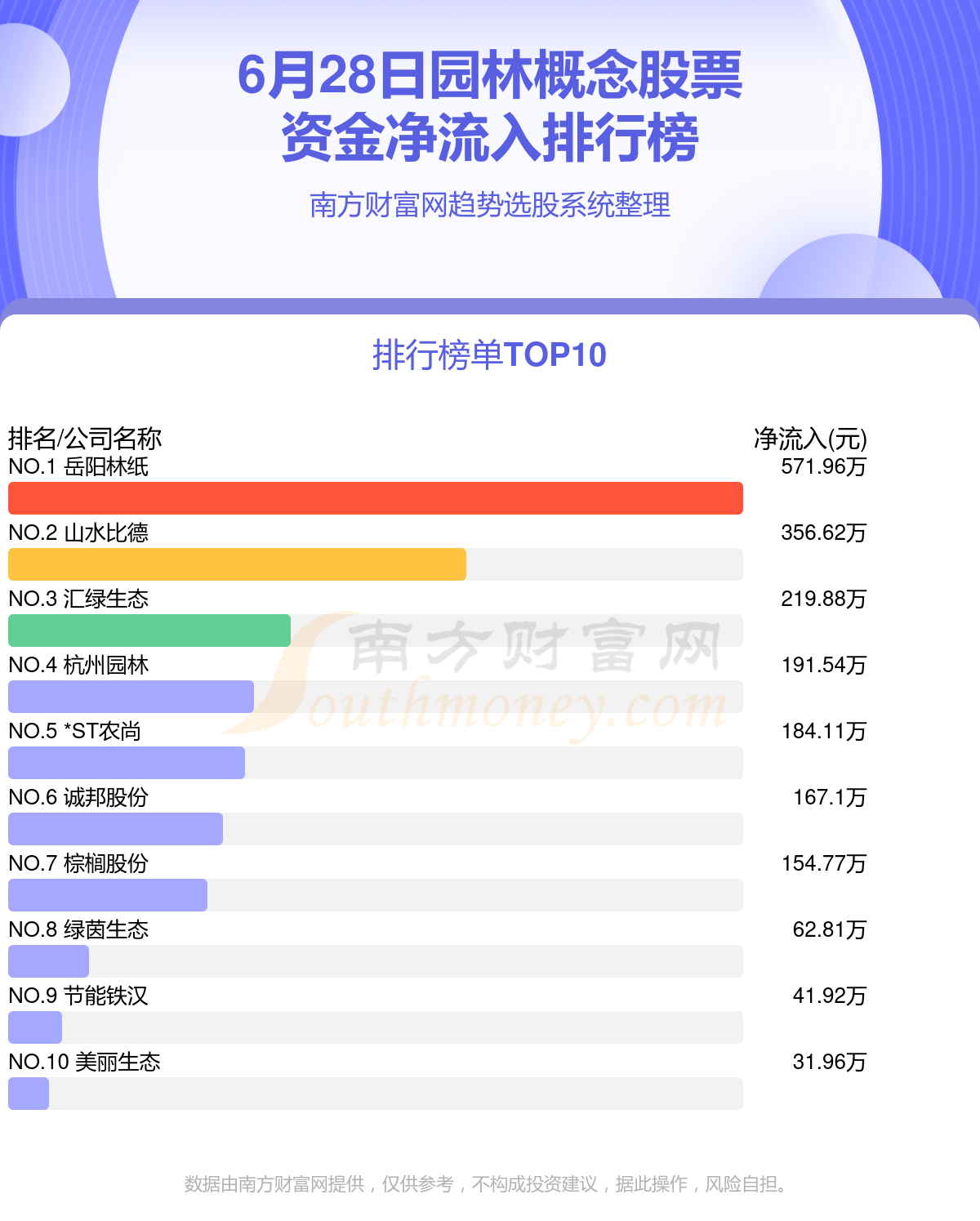 园林概念股票-6月28日资金流向一览