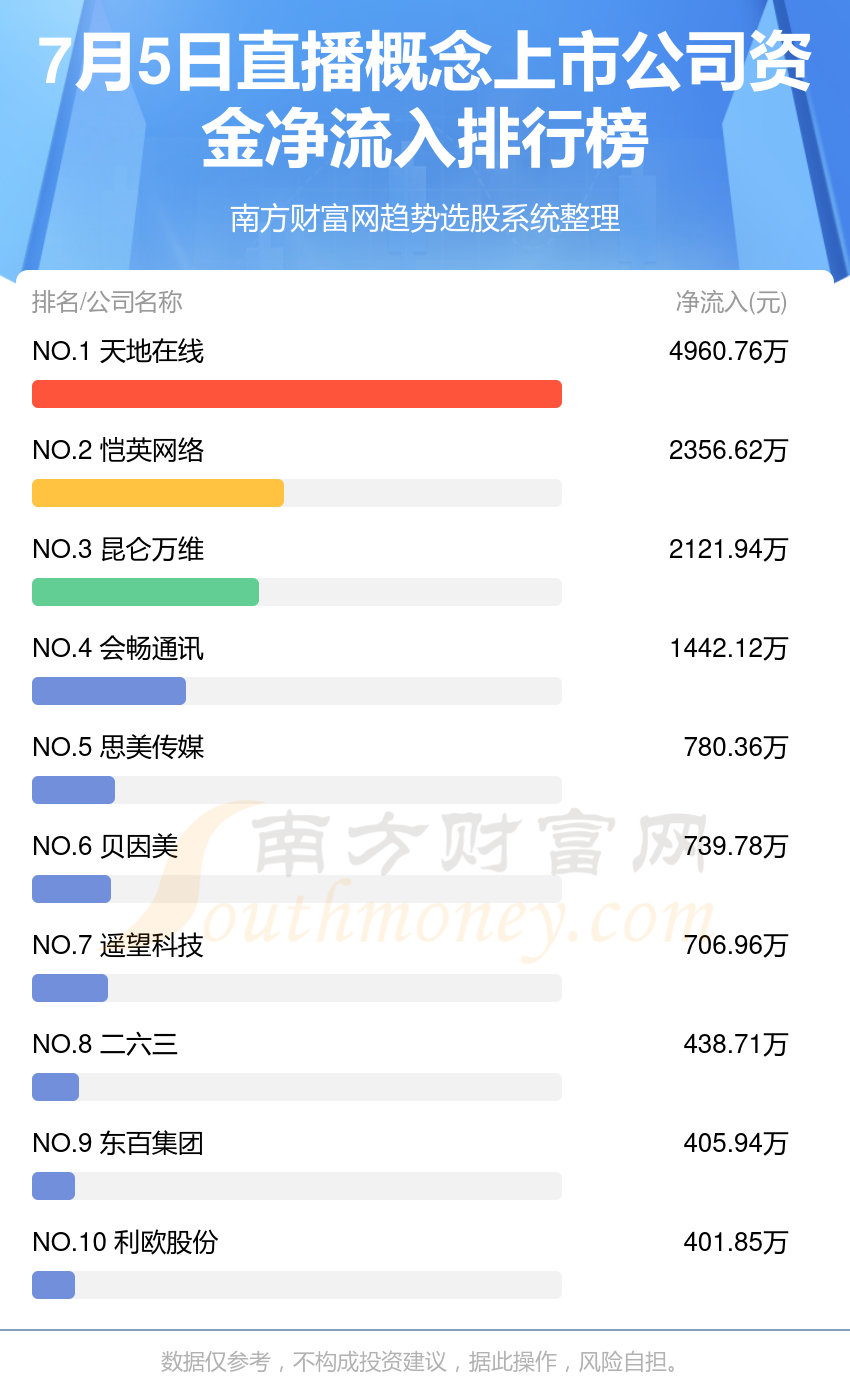 直播概念上市公司-7月5日资金流向查询