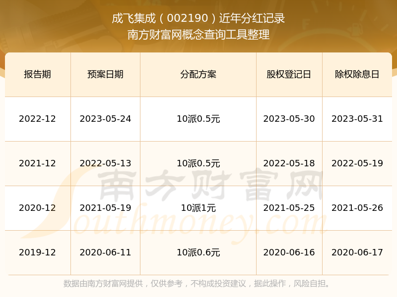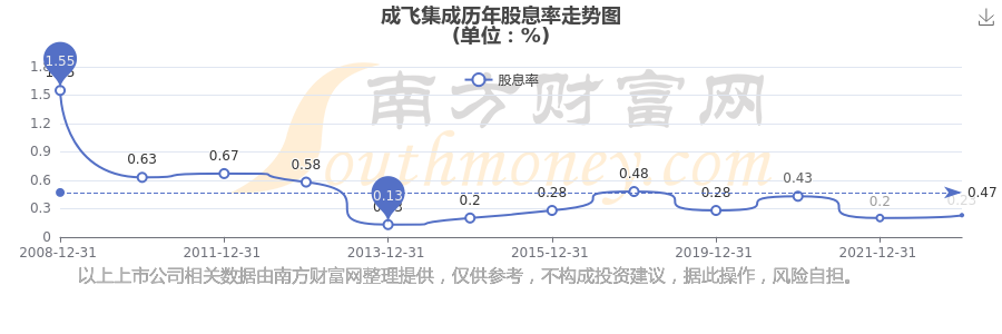 成飞集成最新一次公布的分红方案:10派0.5元。