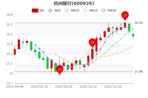 杭州银行公司2025年第二季度营业总收入101.16亿元,净利润55.91亿元,每股收益0.81元,市盈率5.67。