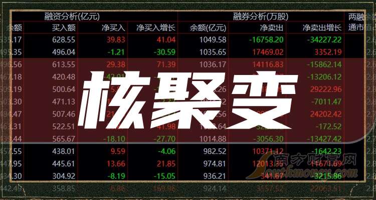 据南方财富网概念查询工具数据显示,核聚变股票龙头有: