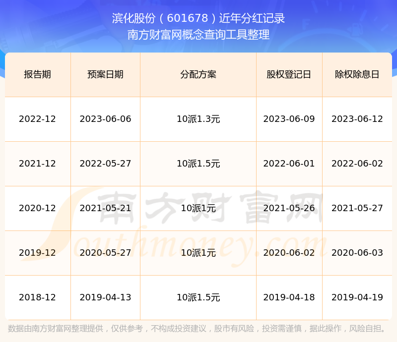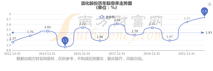 滨化股份最新一次公布的分红方案:10派1.3元。