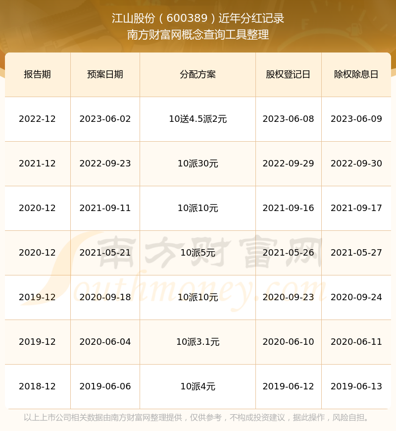 江山股份最新一次公布的分红方案:10送4.5派2元。