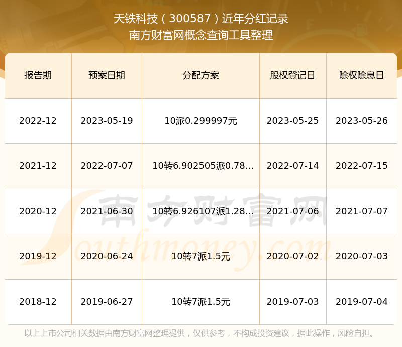天铁科技历年分红派息情况如下表所示: