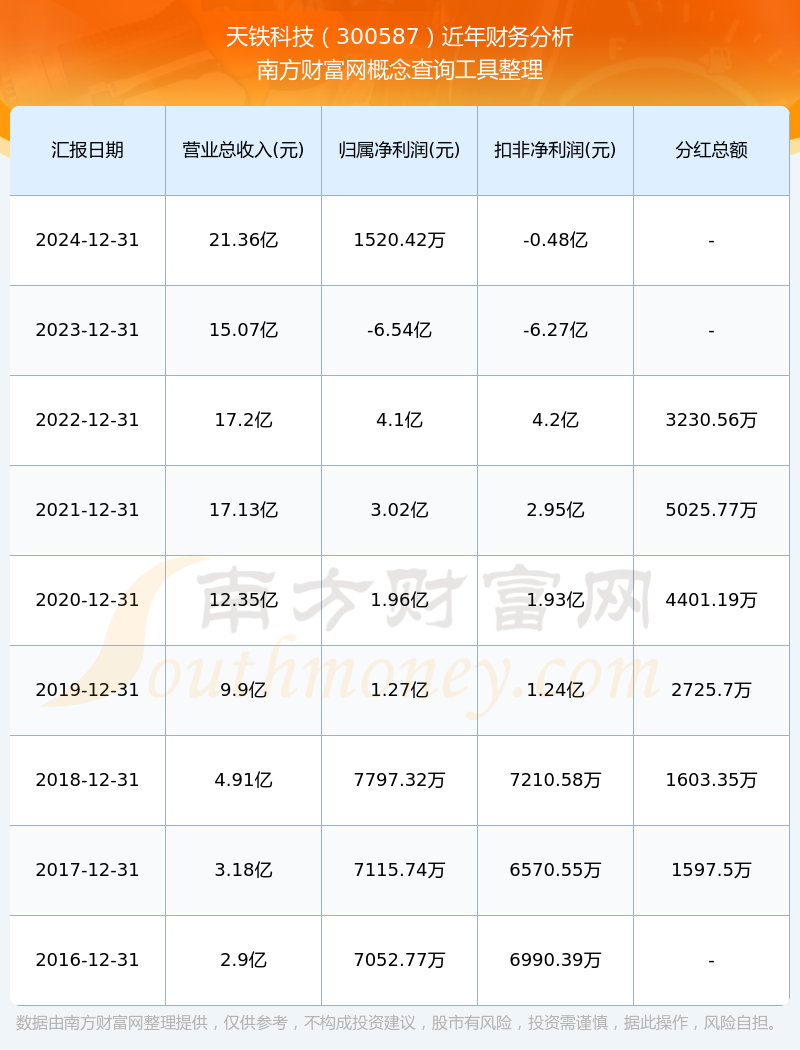 天铁科技财务分析如下图: