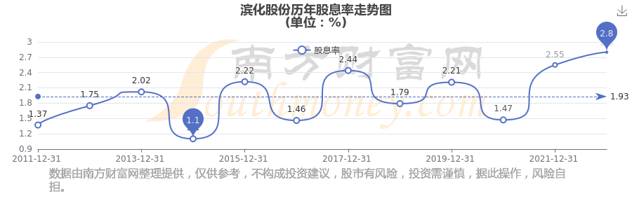 按照南方财富网趋势选股系统统计,滨化股份所属行业为烧碱行业,烧碱行业分红排名情况如下表: