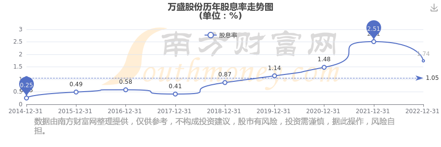 万盛股份历年股息率走势如下图: