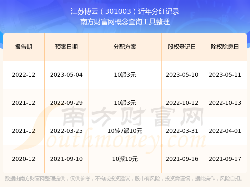近年江苏博云分红派息情况如下表所示: