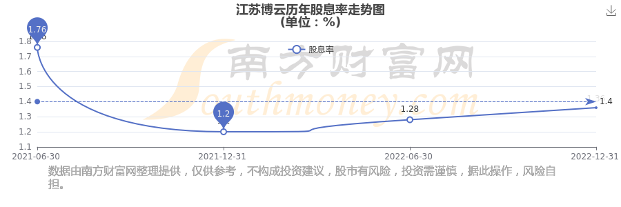 江苏博云历年股息率走势如下图: