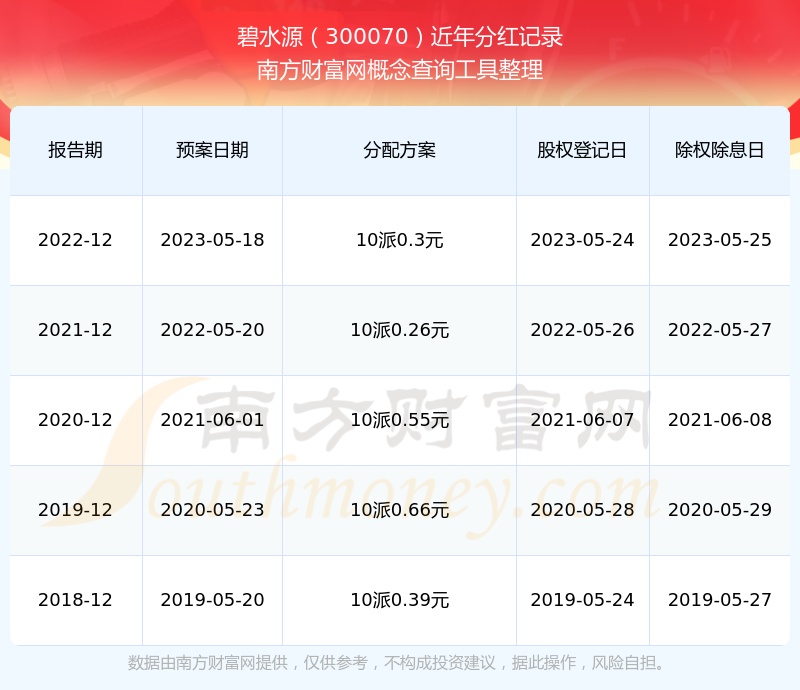 一、碧水源(300070)股票分红记录
