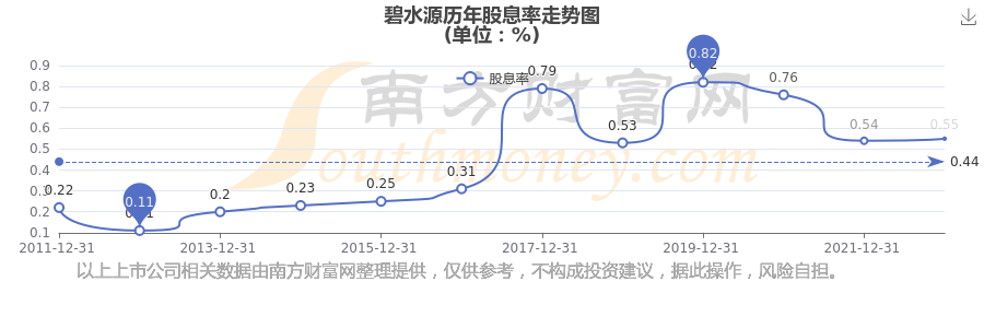 近年碧水源分红情况如下表所示: