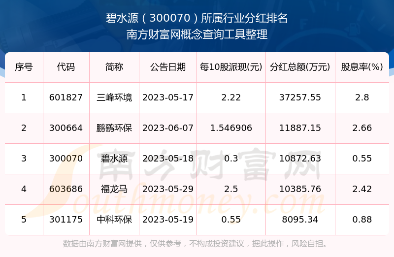 二、碧水源300070行业分红排名