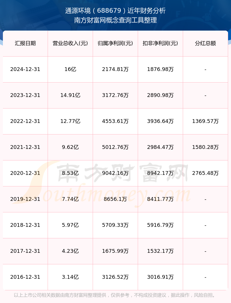 通源环境公司2024年实现营业收入16亿元,同比增长7.35%;净利润2174.81万元,同比增长-31.45%;毛利率18.4%。