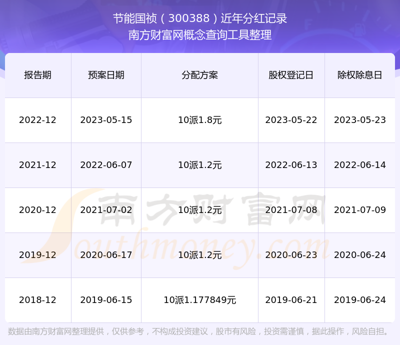 一、节能国祯(300388)股票分红记录