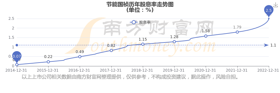 近年节能国祯年度股息率走势如下图: