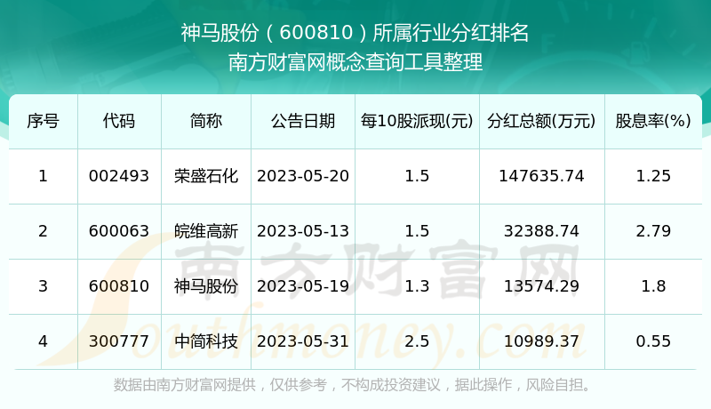 按照南方财富网趋势选股系统统计,神马股份所属行业为化纤行业行业,化纤行业行业分红排名情况如下表: