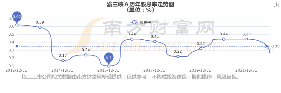 渝三峡A历年股息率走势如下图: