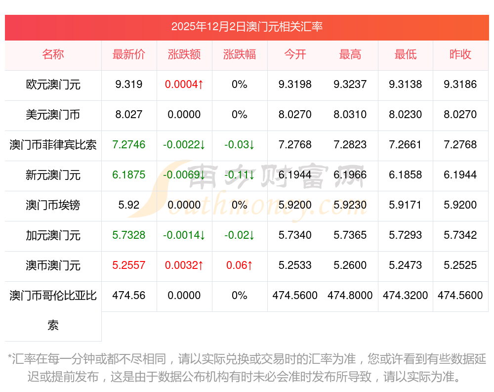 2025年12月2日澳门元相关汇率查询