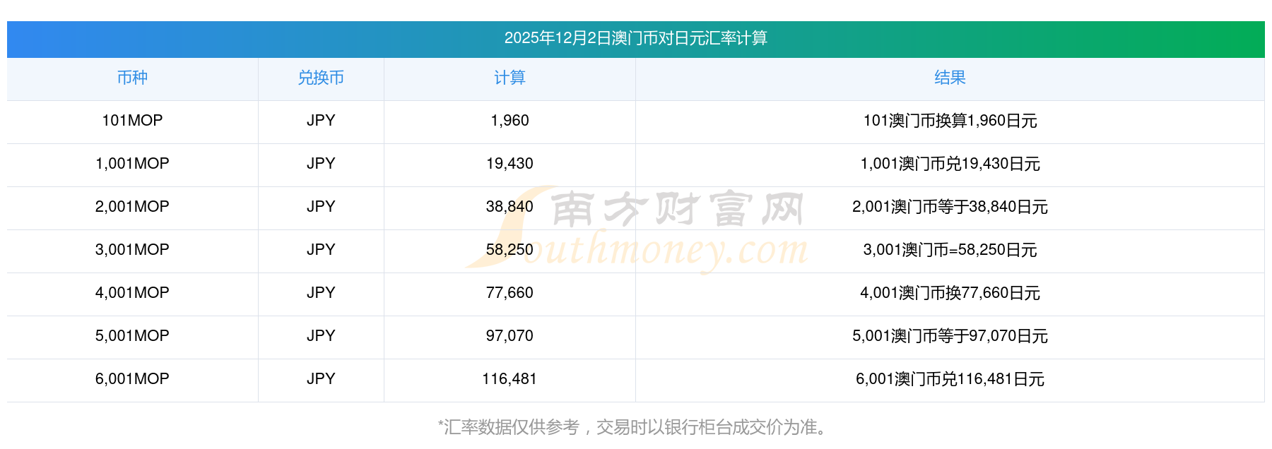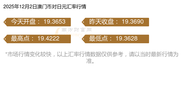 澳门币汇率调整 澳门币与日元兑换汇率多少?2025/12/02