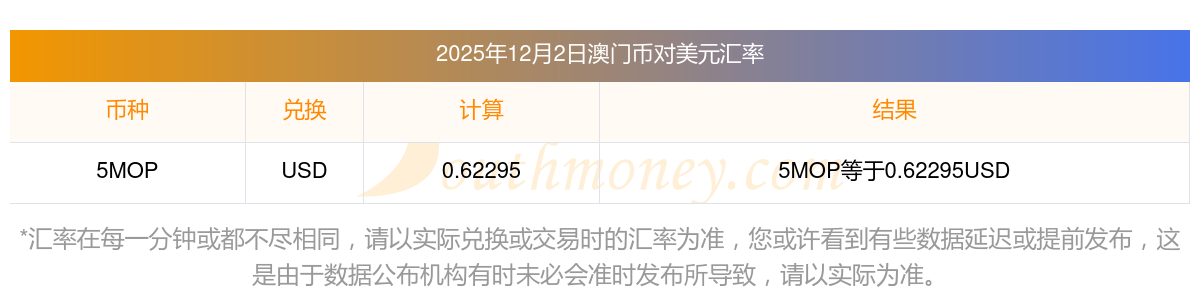 2025年12月2日汇率行情:33澳门币对美元汇率多少