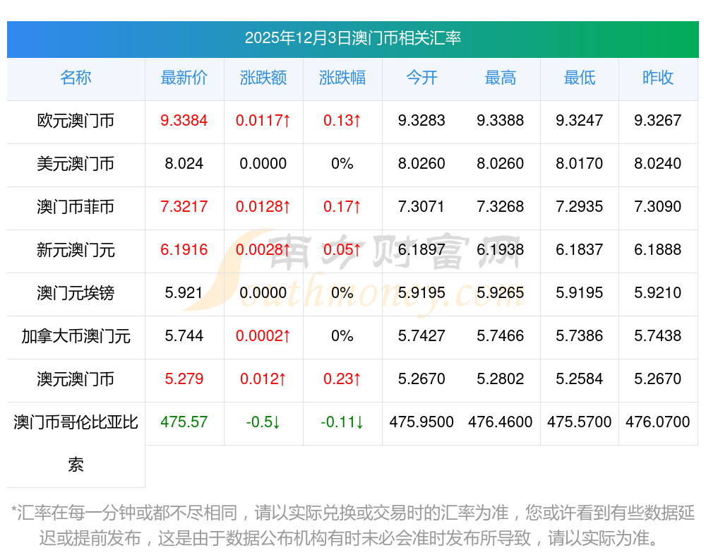 根据2025年12月3日汇率计算,MOP兑换COP汇率最新价475.570000:今开价475.9500,昨收价476.0700,最高价476.4600,最低价475.5700。