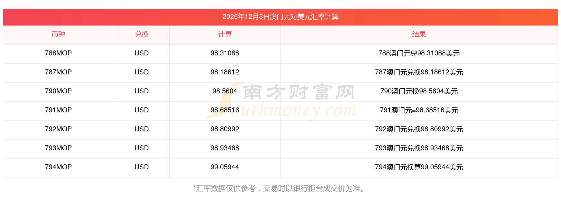 2025年12月3日汇率行情:27澳门元对美元汇率多少