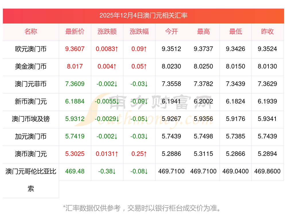 2025年12月4日澳门元相关汇率查询
