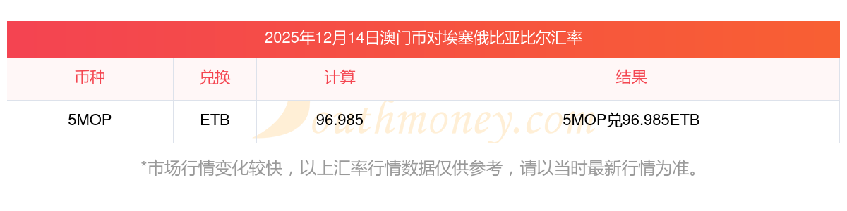最新澳门币兑埃塞俄比亚比尔外汇行情_今日汇率是多少2025-12-14