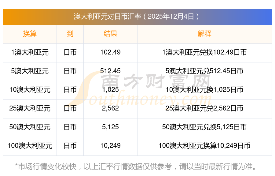 澳元今日汇率,澳元兑换日元的汇率是多少?12-4
