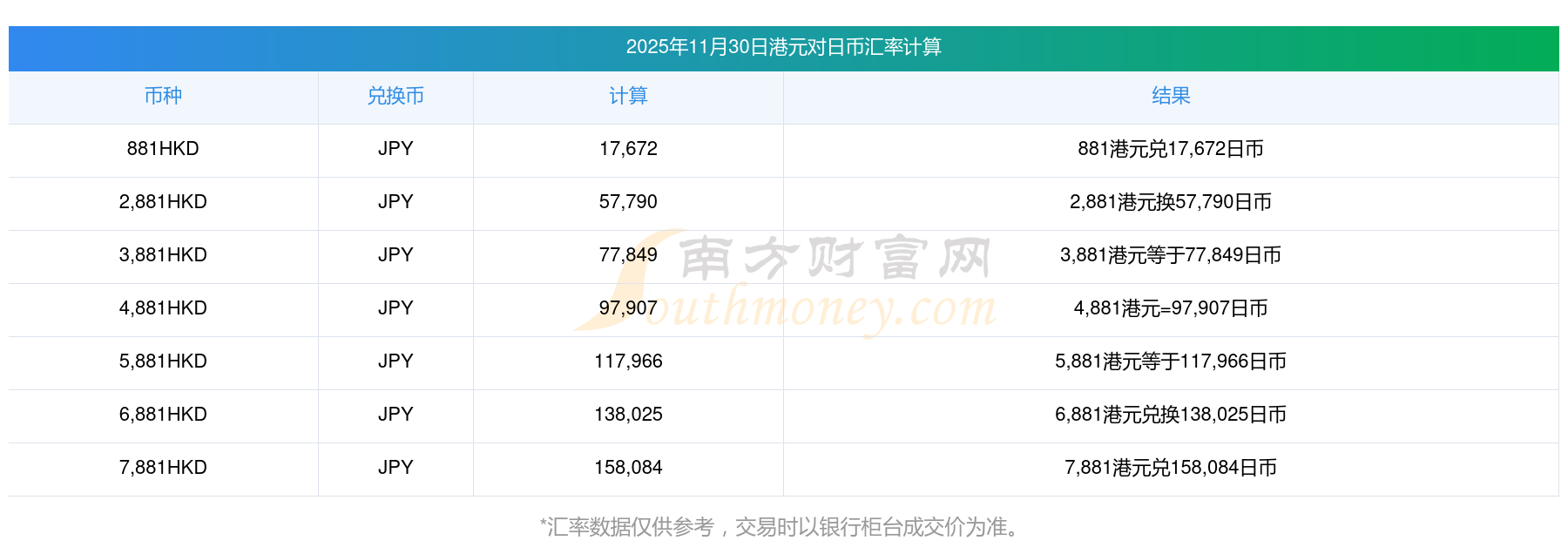 日币今日汇率实时查询 119港元对日币汇率11-30