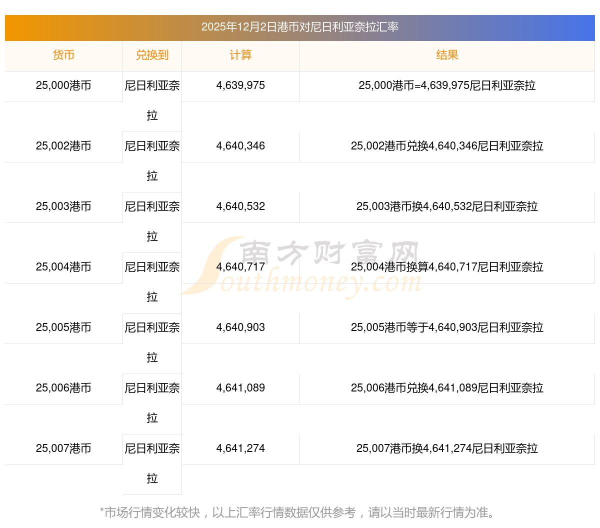 最新港币兑尼日利亚奈拉汇率查询表2025-12-02