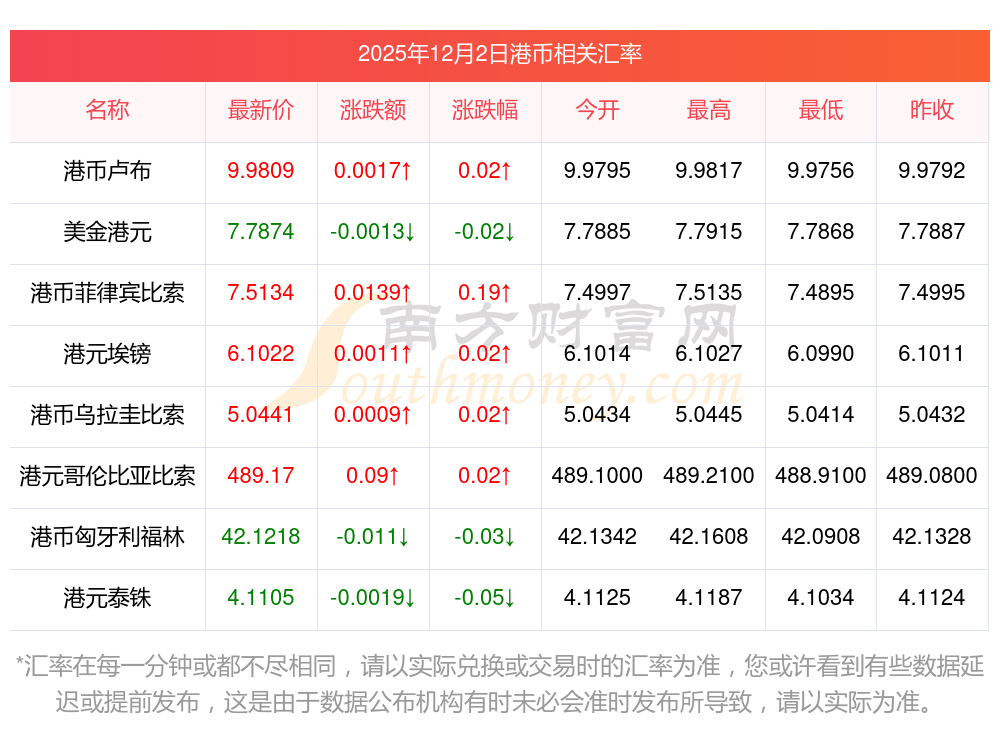 2025年12月2日港币相关汇率查询