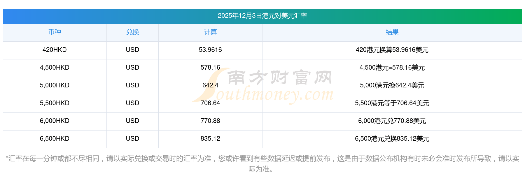 南方财富网为您提供港元对美元汇率最新价格详情。