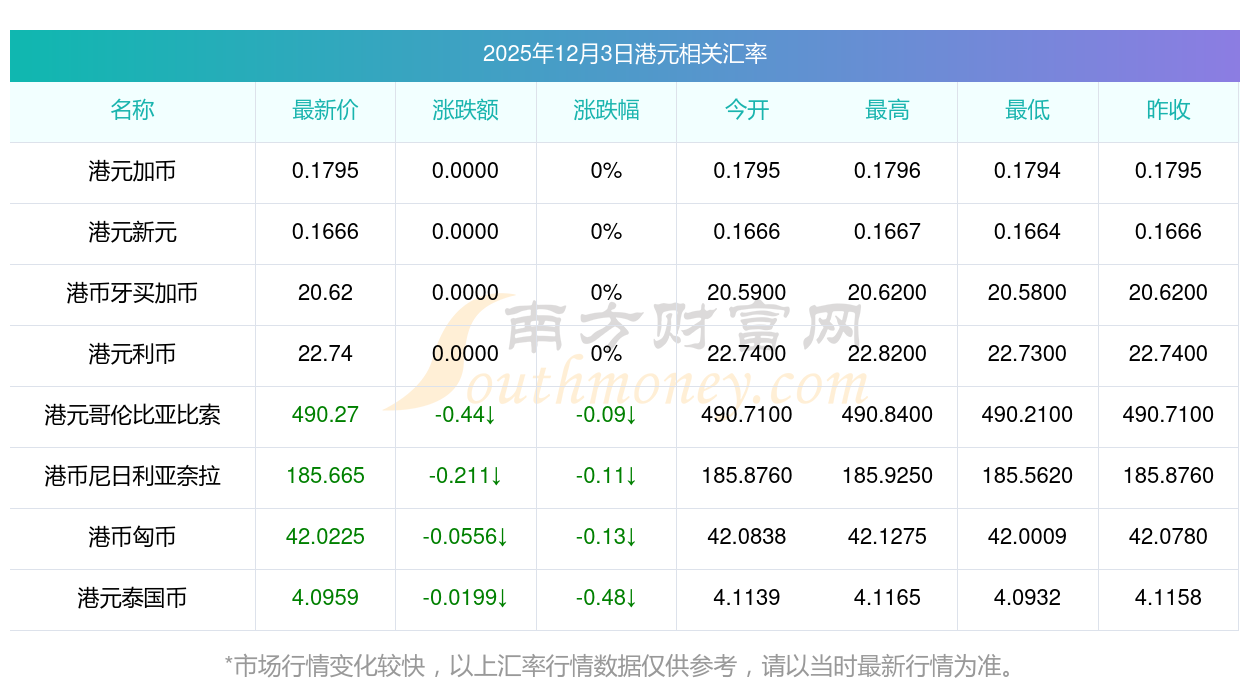 2025年12月3日港元相关汇率查询