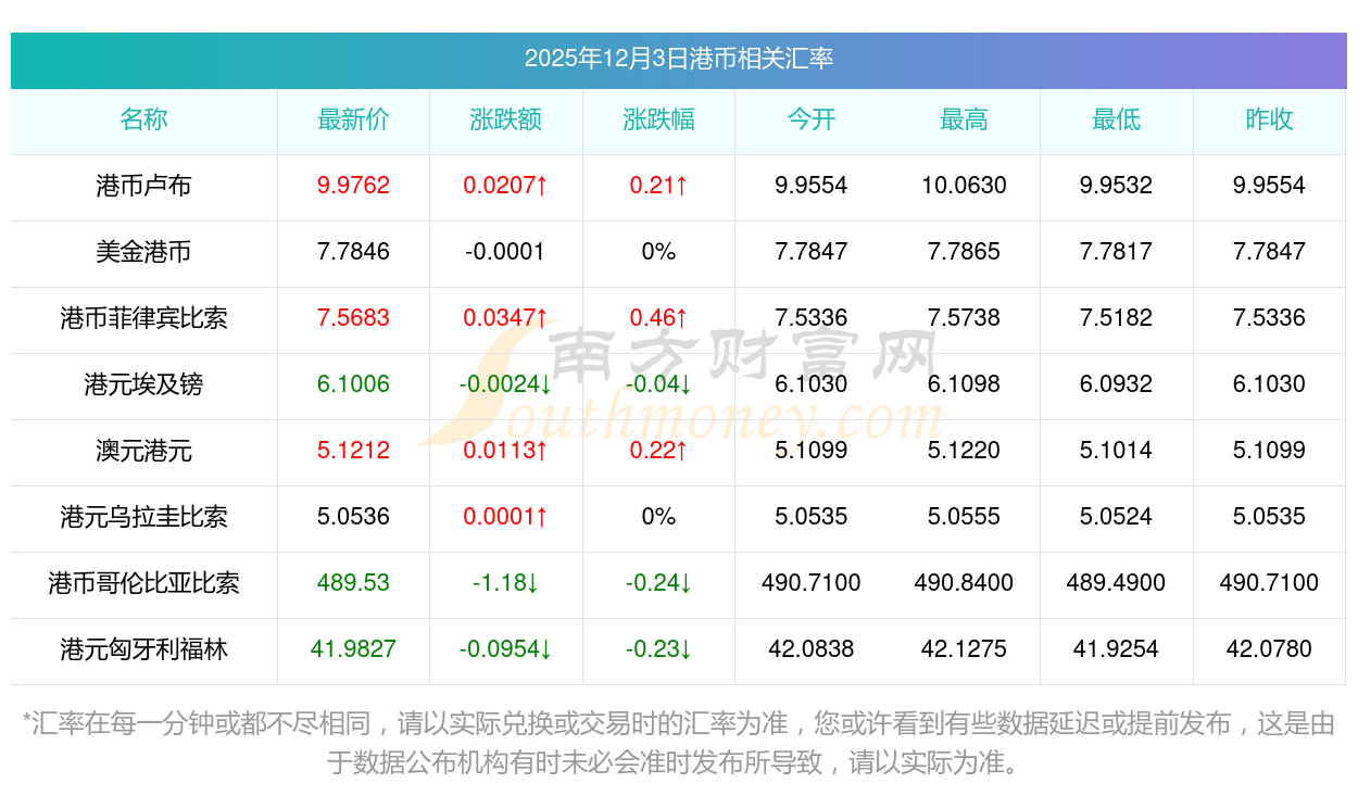 南方财富网为您提供港币对澳门币汇率最新价格详情。