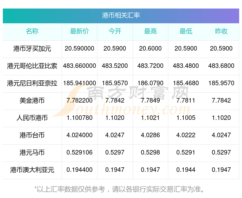 汇率在每一分钟或都不尽相同,请以实际兑换或交易时的汇率为准,您或许看到有些数据延迟或提前发布,这是由于数据公布机构有时未必会准时发布所导致,请以实际为准。