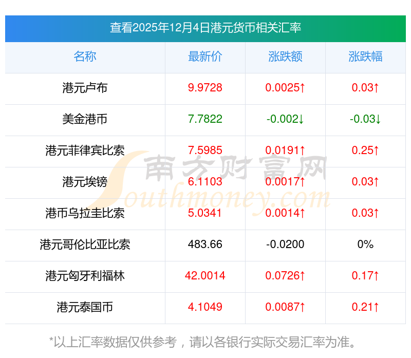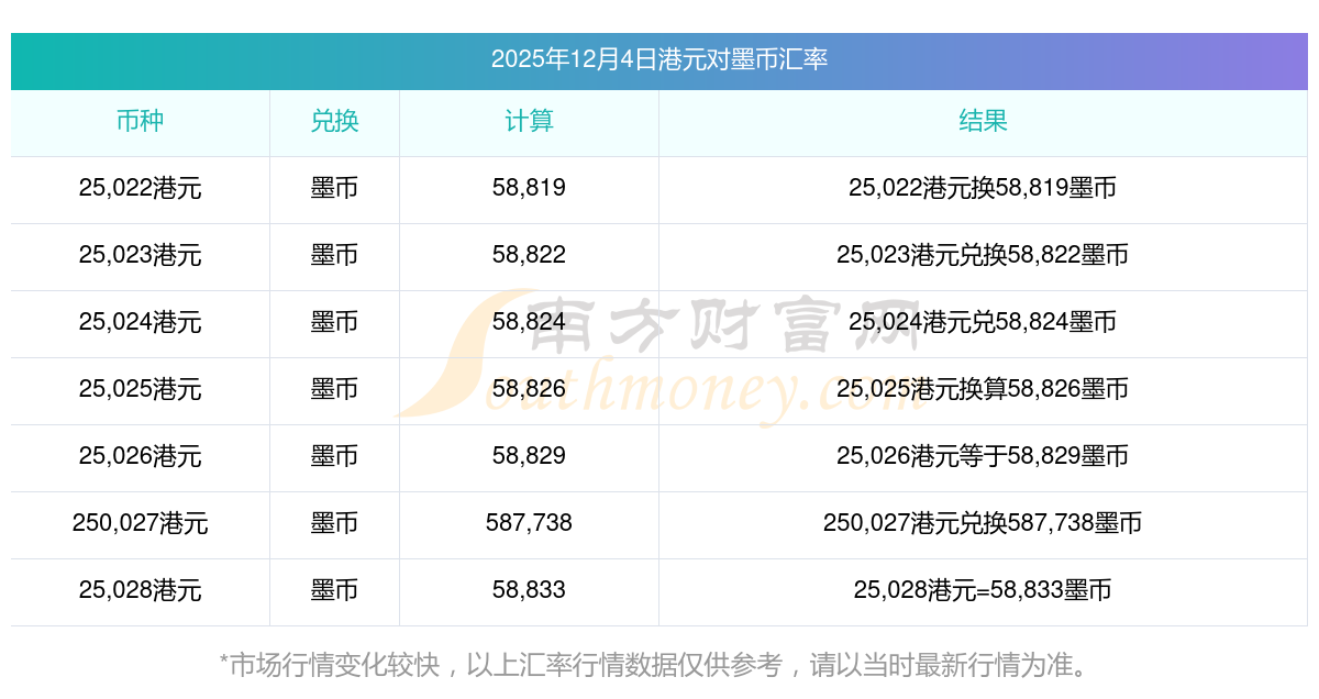 今天汇率行情_9港元换成墨币查询多少(12月4日)