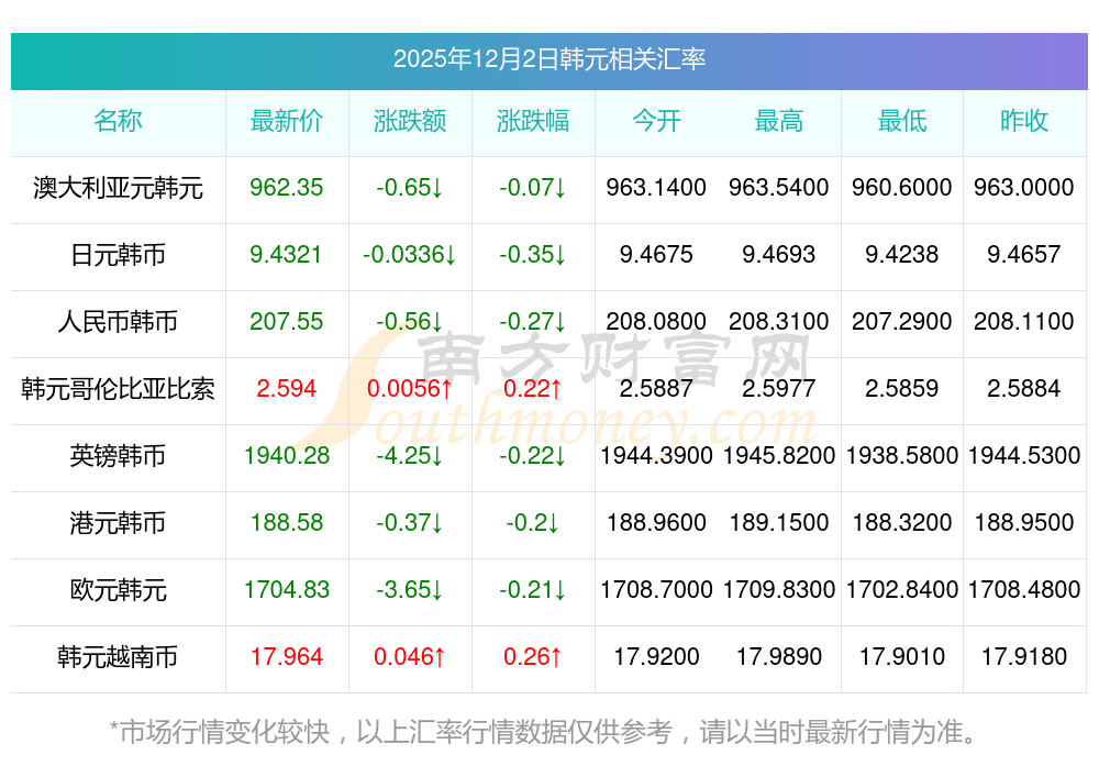 2025年12月2日韩元相关汇率查询