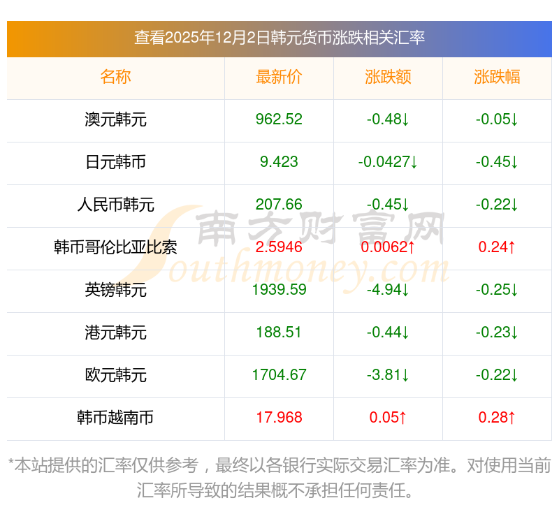根据今天2025年12月2日汇率计算,KRW兑换TWD汇率最新价0.021400,今开价0.0214,昨收价0.0214,最高价0.0215,最低价0.0213。