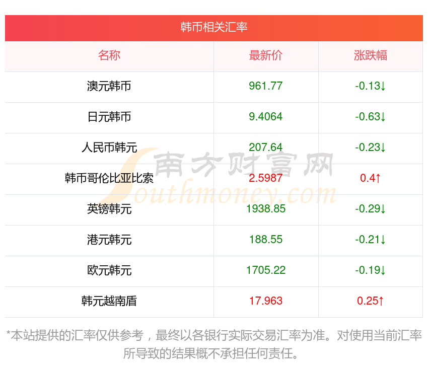 南方财富网为您提供韩币对挪币汇率最新价格详情。