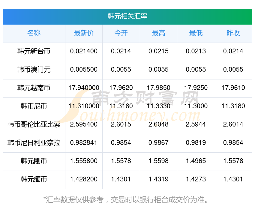 南方财富网为您提供韩元对斐济刀汇率最新价格详情。