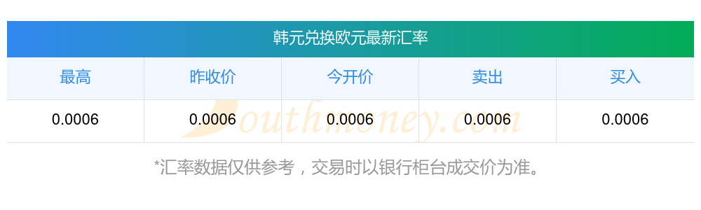 南方财富网为您提供韩元对欧元汇率最新价格详情。